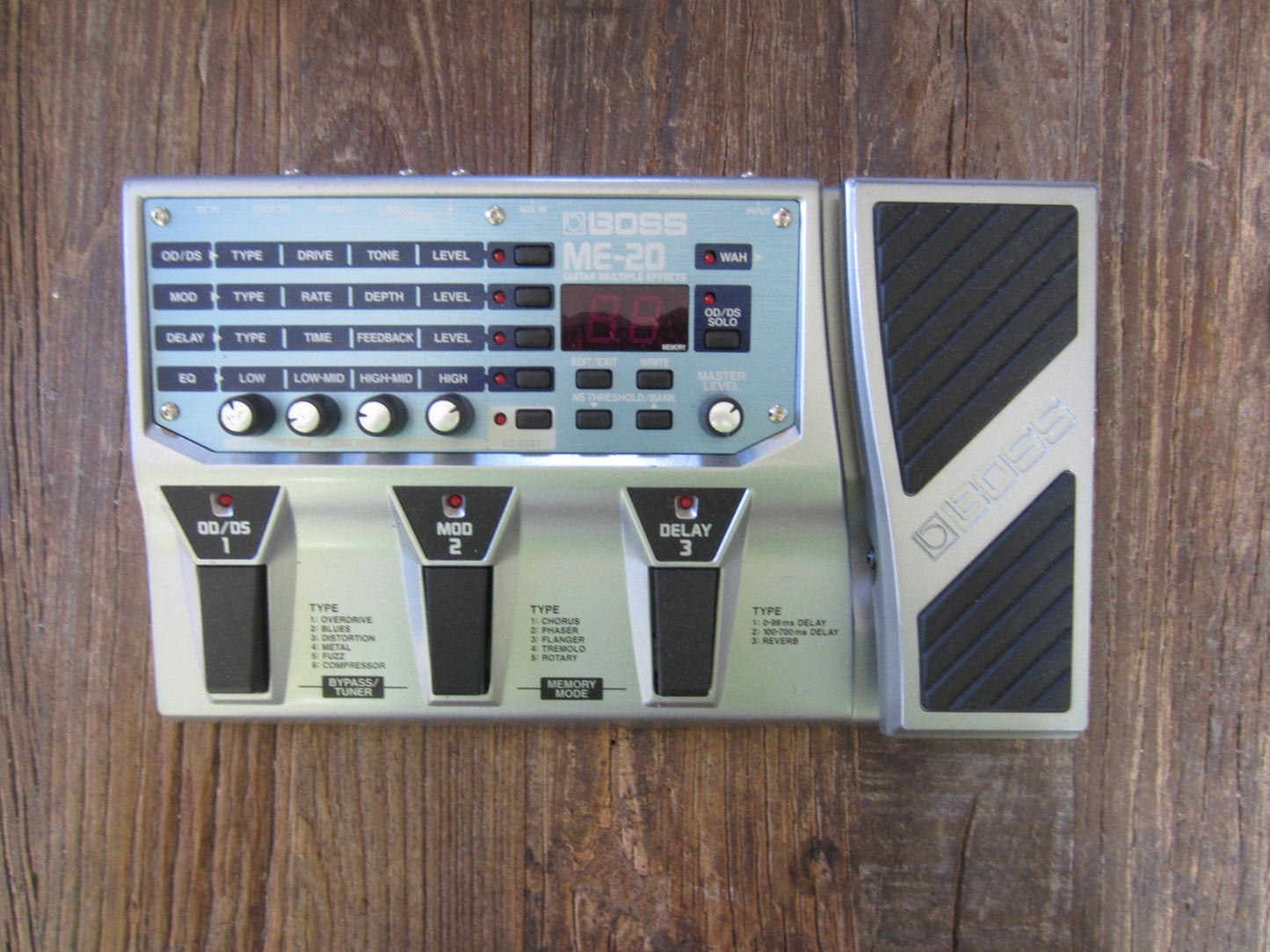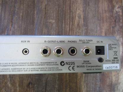Here's a clean Boss ME-20 Multi-Effects Unit. It does not power on with another Boss Power Supply. I popped it open and didn't see anything glaring. Don't have time to fool with it but I'm sure it's something simple.