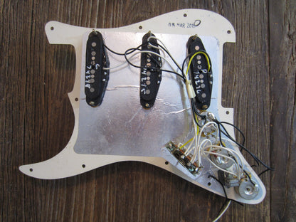 Here's a very nice and clean Fender Deluxe Player Stratocaster loaded pickguard completely wired up and ready for your next project. The original Noiseless pickups sound great and the added push/push gives two extra tones to include all three pickups active and both the neck and bridge pickups.