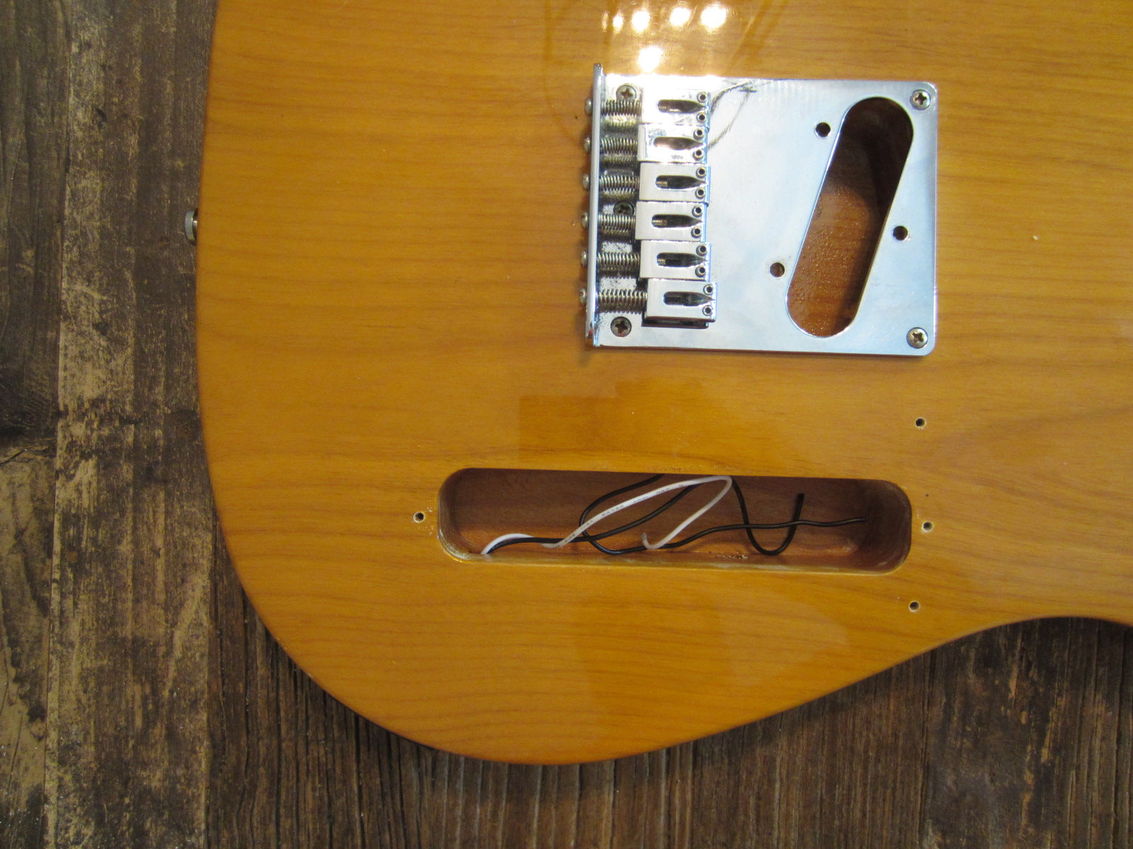 Here's a nice and clean 2014 Squier by Fender Affinity Series Telecaster body complete with the original top-loader bridge. The Butterscotch finish is in good shape but does show some minor - the most notable blemish is on the back and is clearly pictured. Bolt on your favorite neck with some great sounding pickups and get at it!