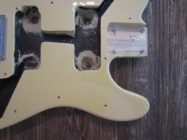 Here's a super nice and clean 2010 Squier by Fender Vintage Modified Telecaster Custom body complete with the original hardware. Shows some very light minor wear with just one chip that has been clearly pictured. This body will accommodate standard pickguard mounted humbuckers as well as pickguard mounted P90s. Great color and could be a fantastic platform for your next Telecaster project!