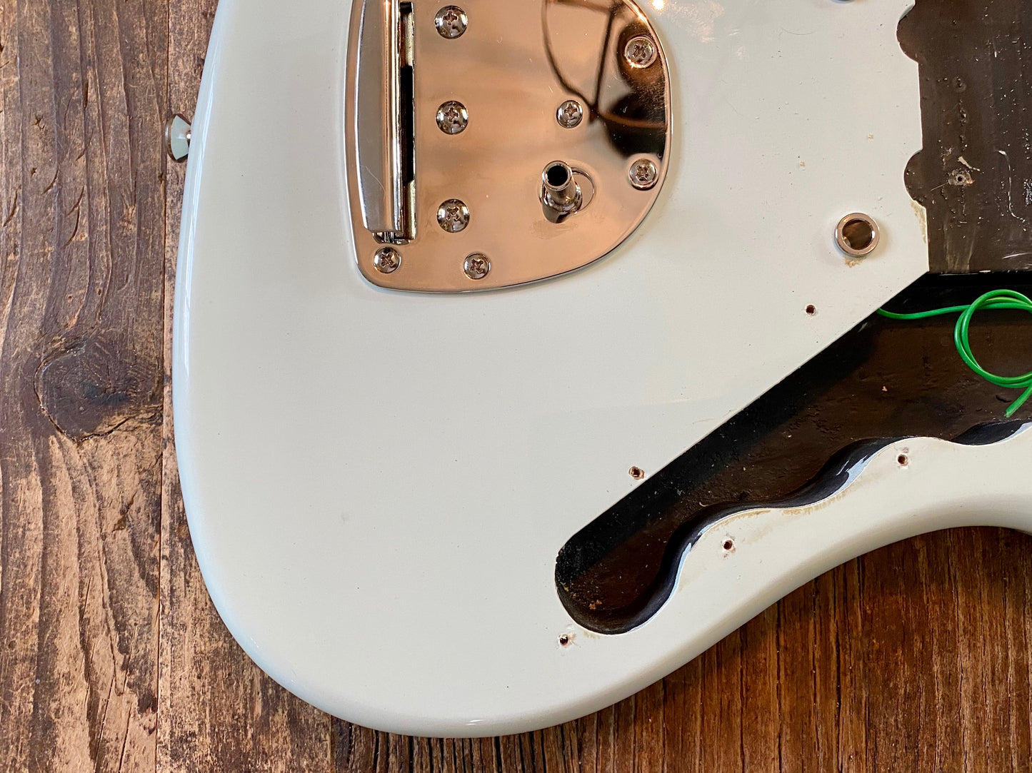 Here's a super nice and clean 2019 Squier by Fender Classic Vibe 60s Jazzmaster Body complete with the original hardware. This body is all but pristine with only a single pin-sized ding on the rear of the body.