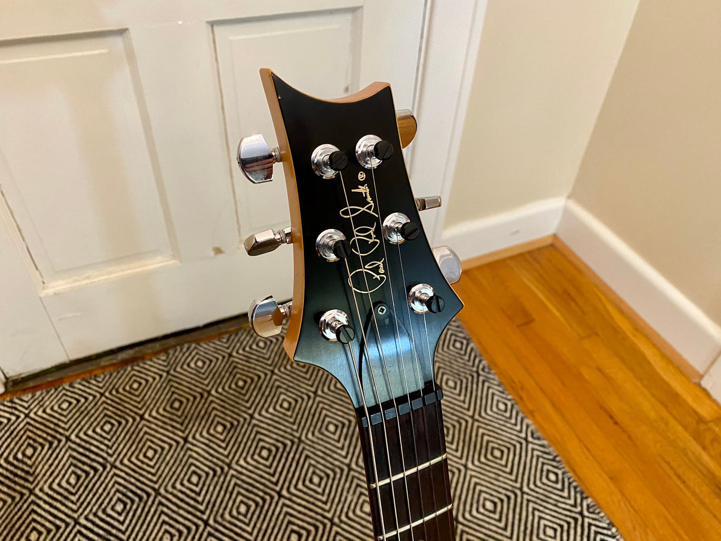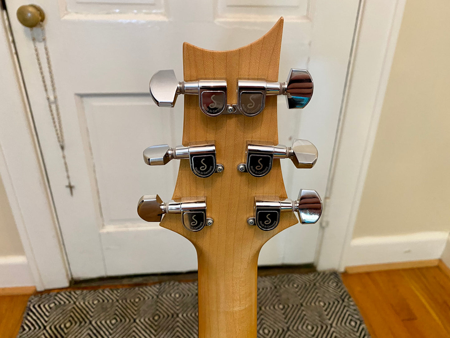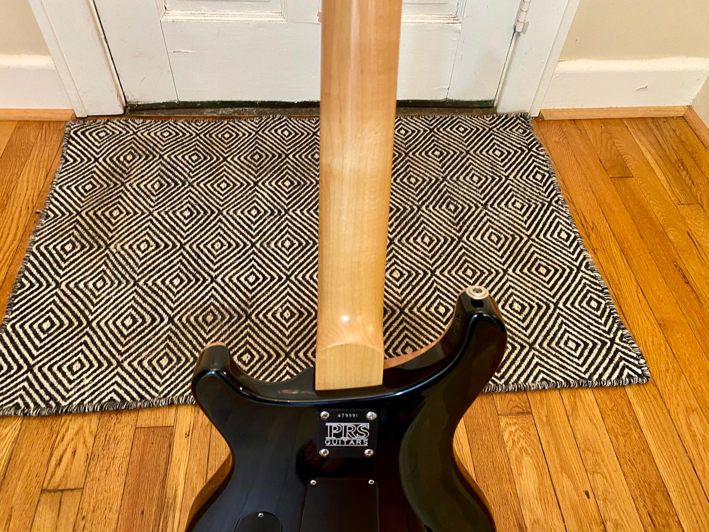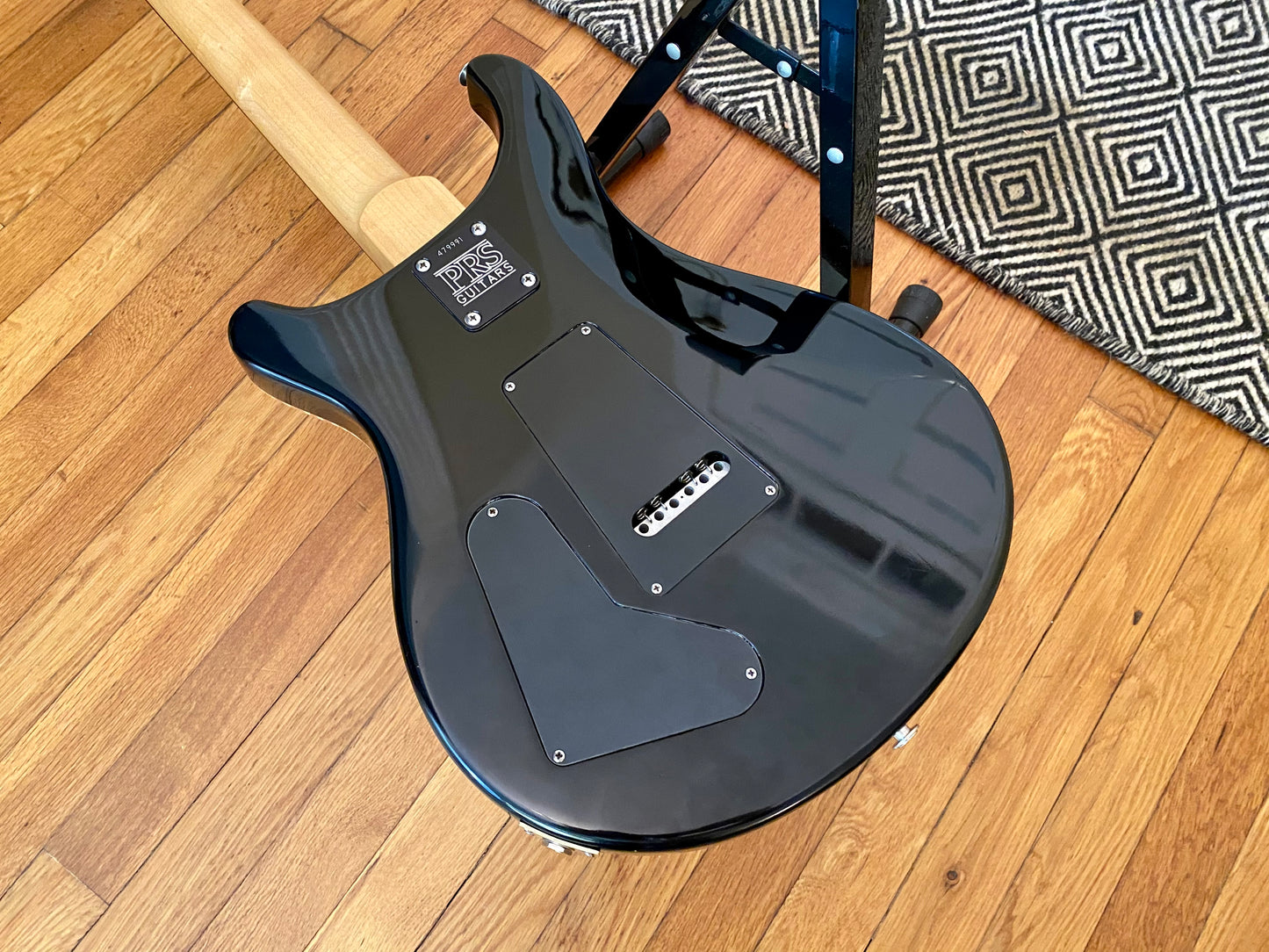 The wiring has been replaced with a PRS McCarty Wiring Harness with Push/Pull Tone Control by a previous owner. The clear coat was peeling around the toggle mounting hole and was touched up with a nitro touchup pen - also by the previous owner. Not the prettiest repair, but easy to remove in the event of a more suitable solution.