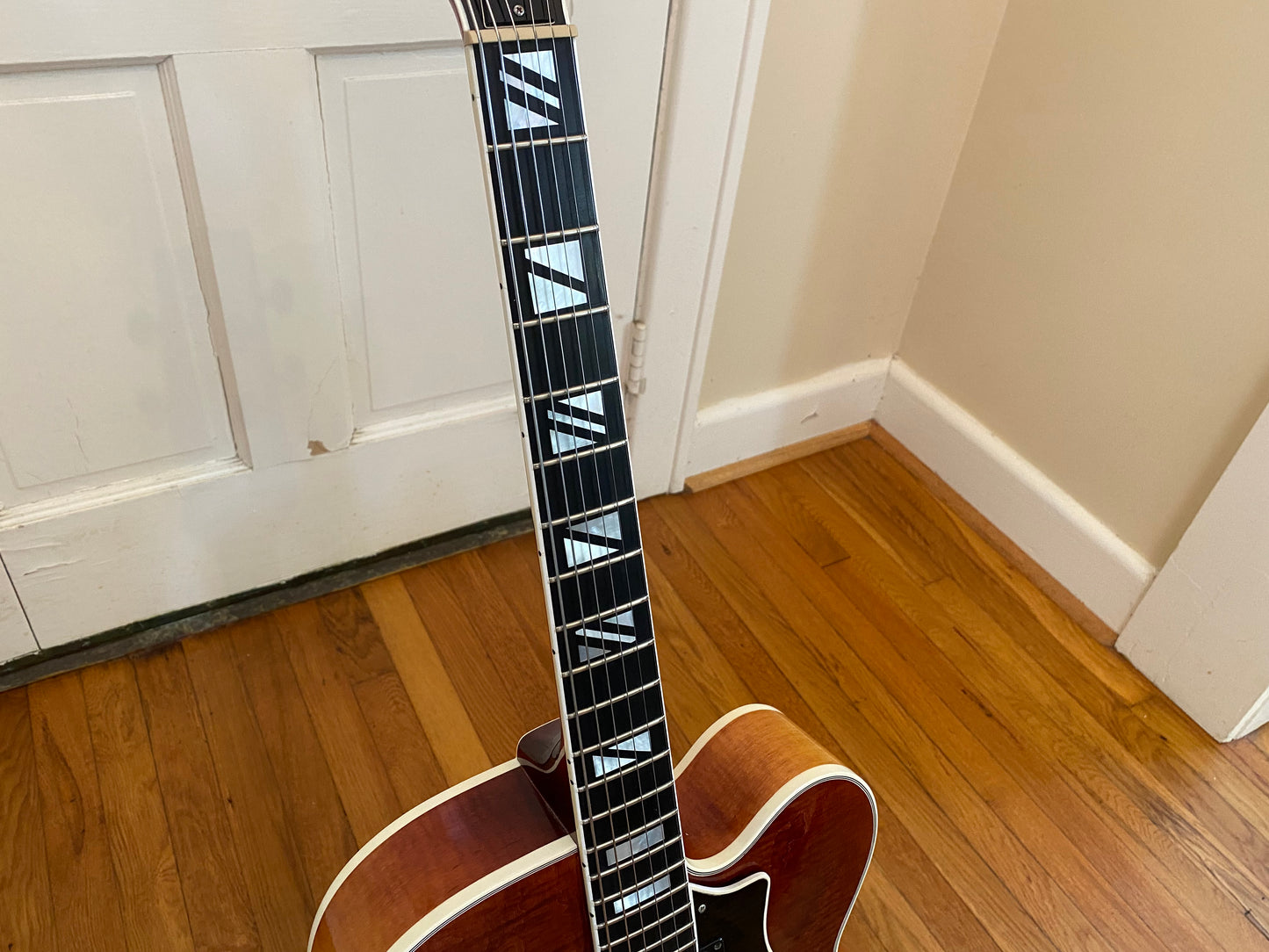Currently set up with flat wound strings, this guitar plays and sounds fantastic - just like it should. The neck is straight and the action is low and comfortable. The intonation has been set as well.
