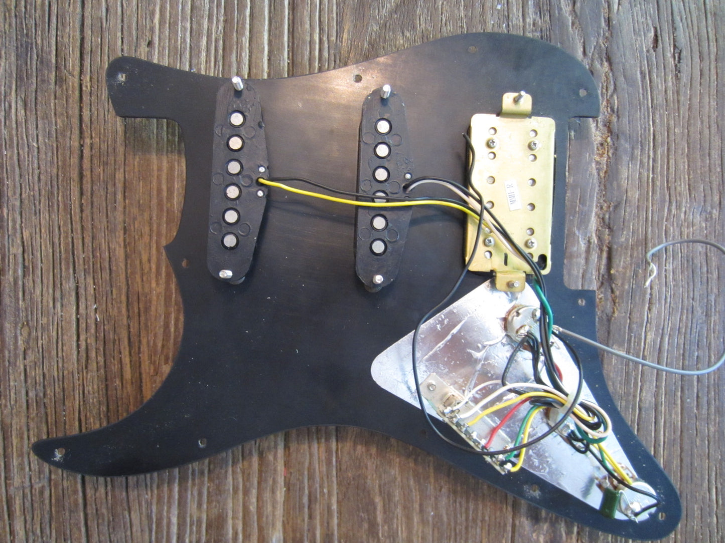 Here's a nice and clean 2003 Squier by Fender Standard Series Stratocaster loaded pickguard w/ an HSS configuration. All the controls function as they should, no static or scratching. It comes complete with rear tremolo cover and the original screws - some over the screws show a fair amount of corrosion/pitting.