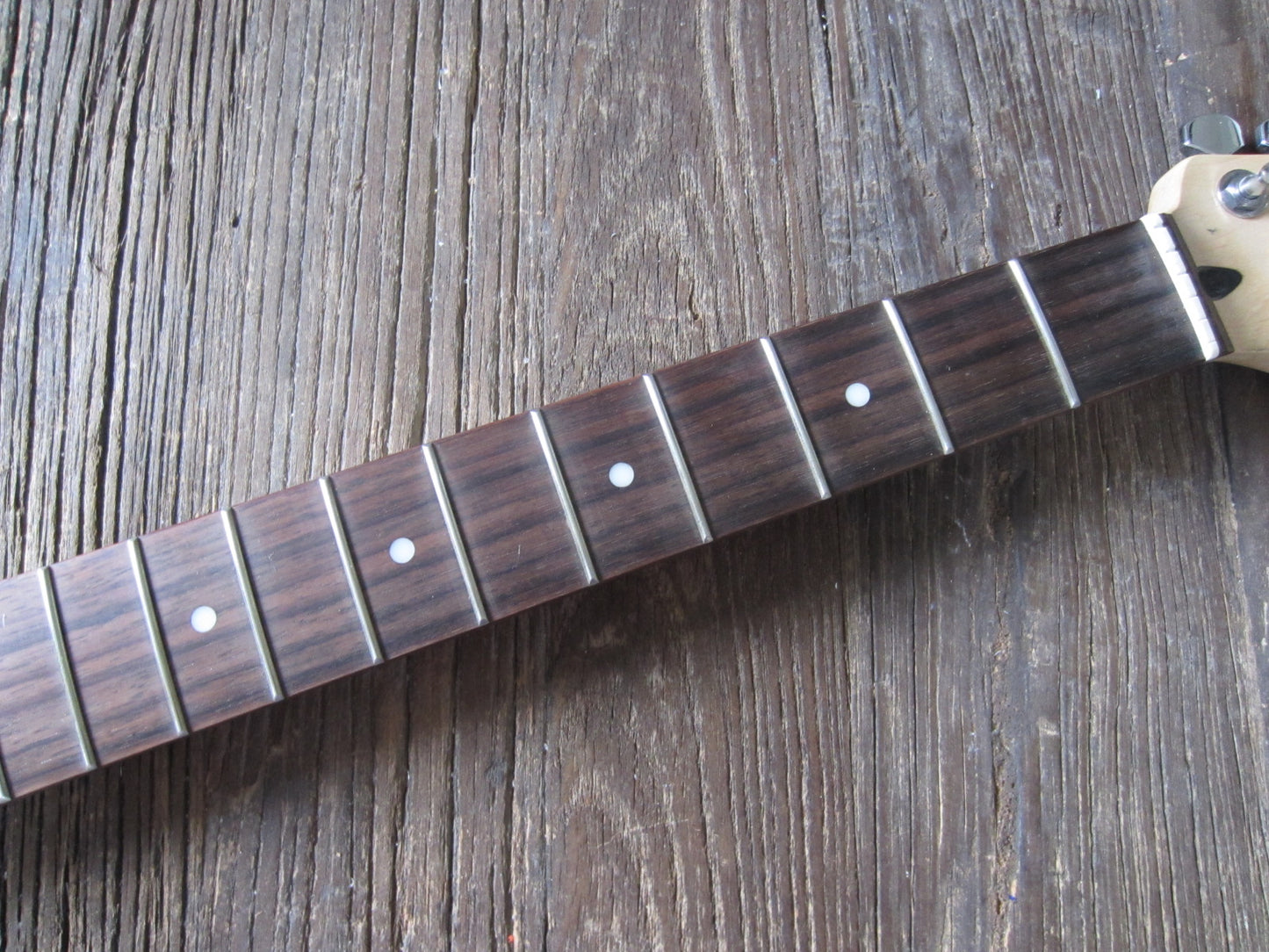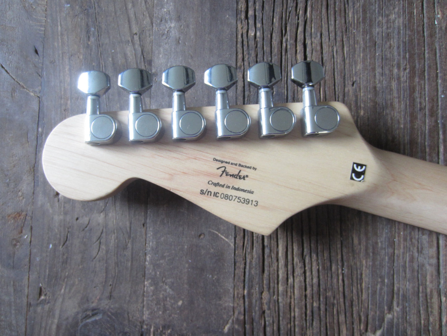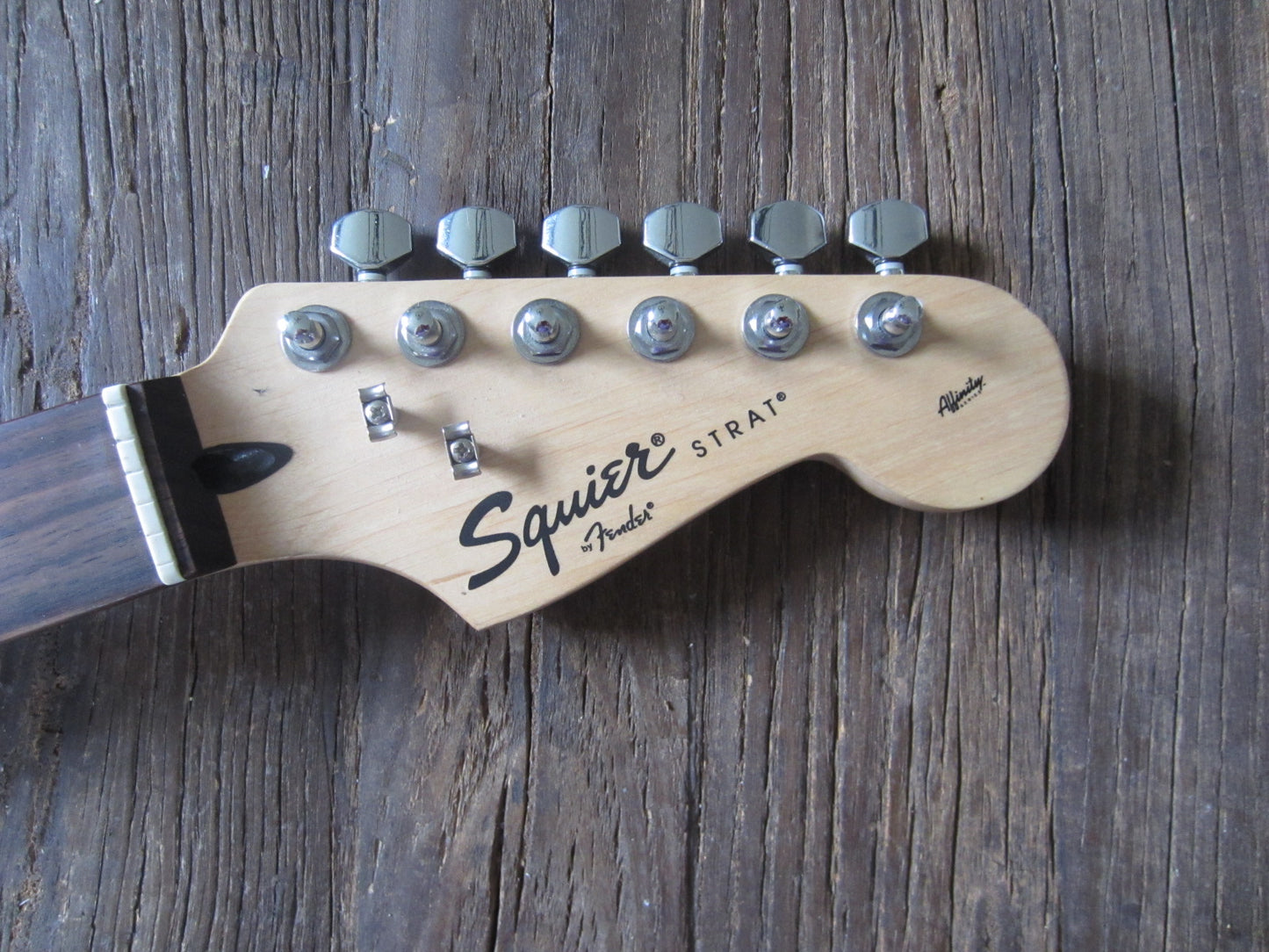 Here's a very nice and clean Squier by Fender Affinity Series Stratocaster maple neck w/ 21-Fret Rosewood Fingerboard. The neck is straight and the truss rod functions properly. It comes complete with the original factory tuning machines. Shows minor wear but overall great shape!