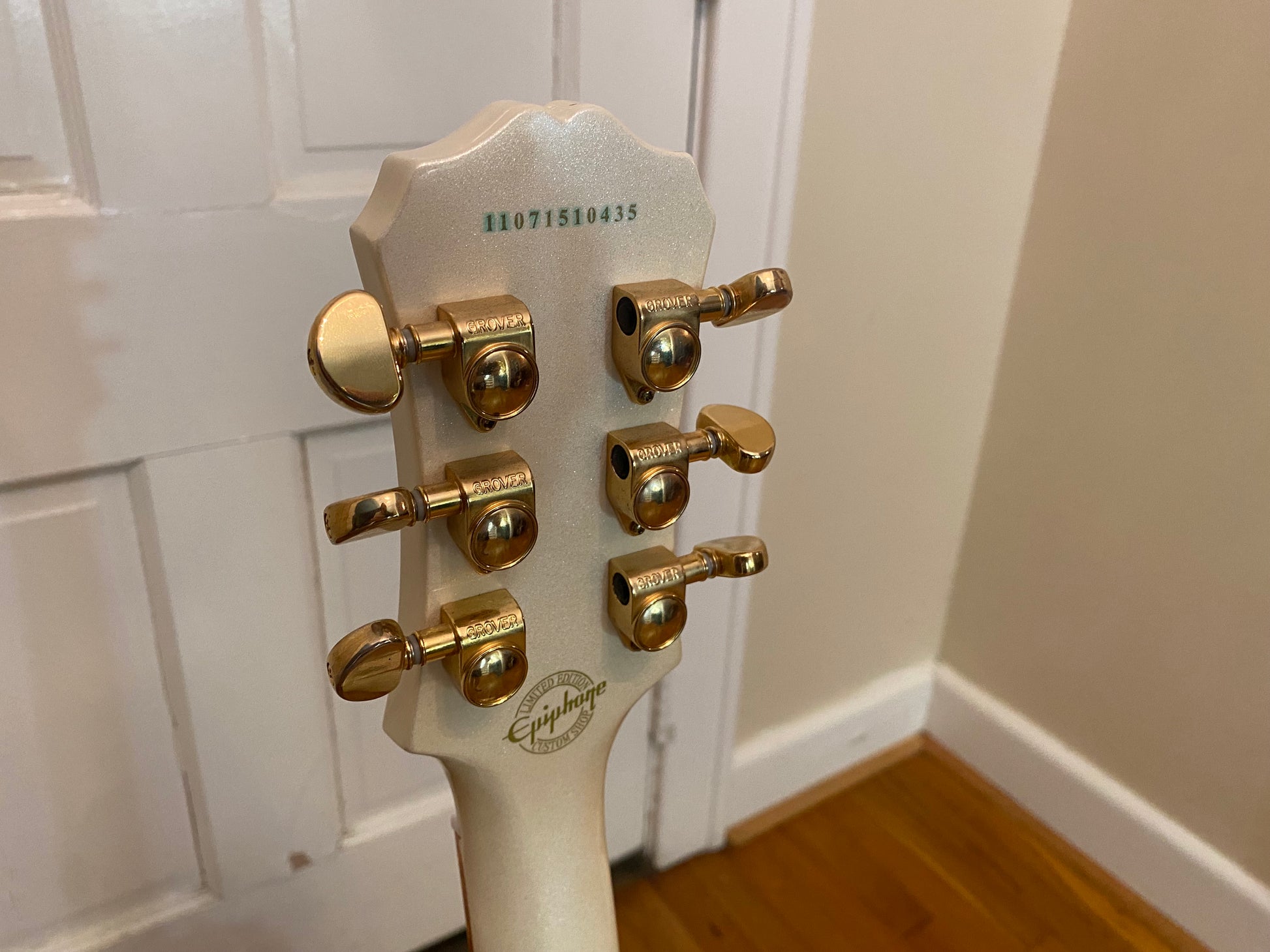 2011 Les Paul Standard Royale Limited Edition Custom Shop | Pearl White, Orange Sparkle Binding