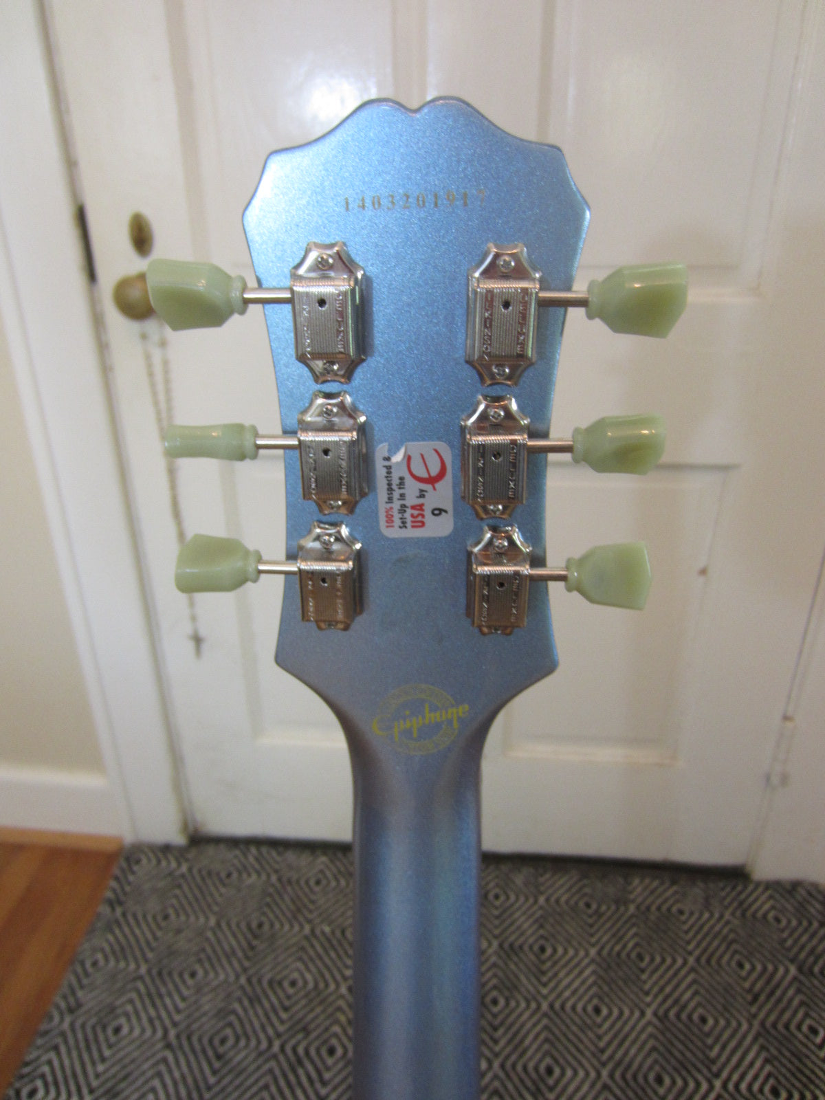 Here is a virtually spotless Limited Edition Custom Shop 2014 Epiphone SG Pro finished in the original Pelham Blue and complete with the original Epiphone hard case.