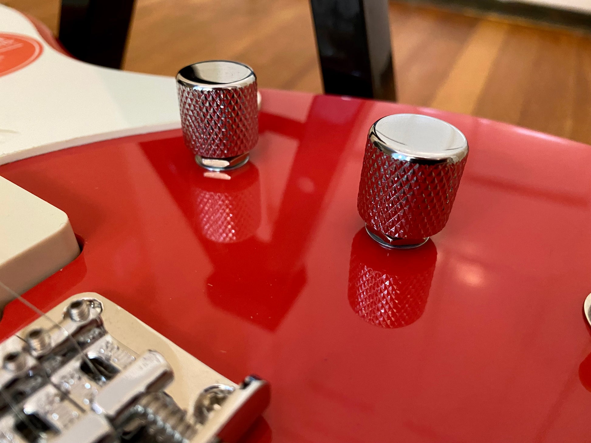 Here is an extremely nice and clean 2020 Squier Paranormal Thinline Cabronita Telecaster finished in the original Fiesta Red. It plays and sounds fantastic. This guitar has been tastefully and discreetly modified with top quality components to add 3 additional pickup combinations - In Series / In Phase, In Series / Out Of Phase, and In Parallel / Out Of Phase. Volume Pot is a Master Series/Parallel Switch that puts both pickups in series regardless of the toggle position when pulled up. The tone pot is a phase switch for the bridge pickup and is active when the toggle switch is in the middle position - or - the volume pot is pulled in the series position.