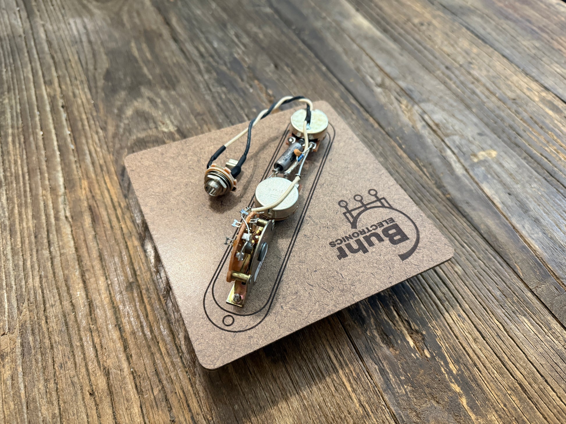 The perfect affordable, unique wiring kit for your HH Telecaster or T-style build. Compatible with any pickup lead style. Requires control plate w/ 2.5" center-to-center spacing between volume and tone.